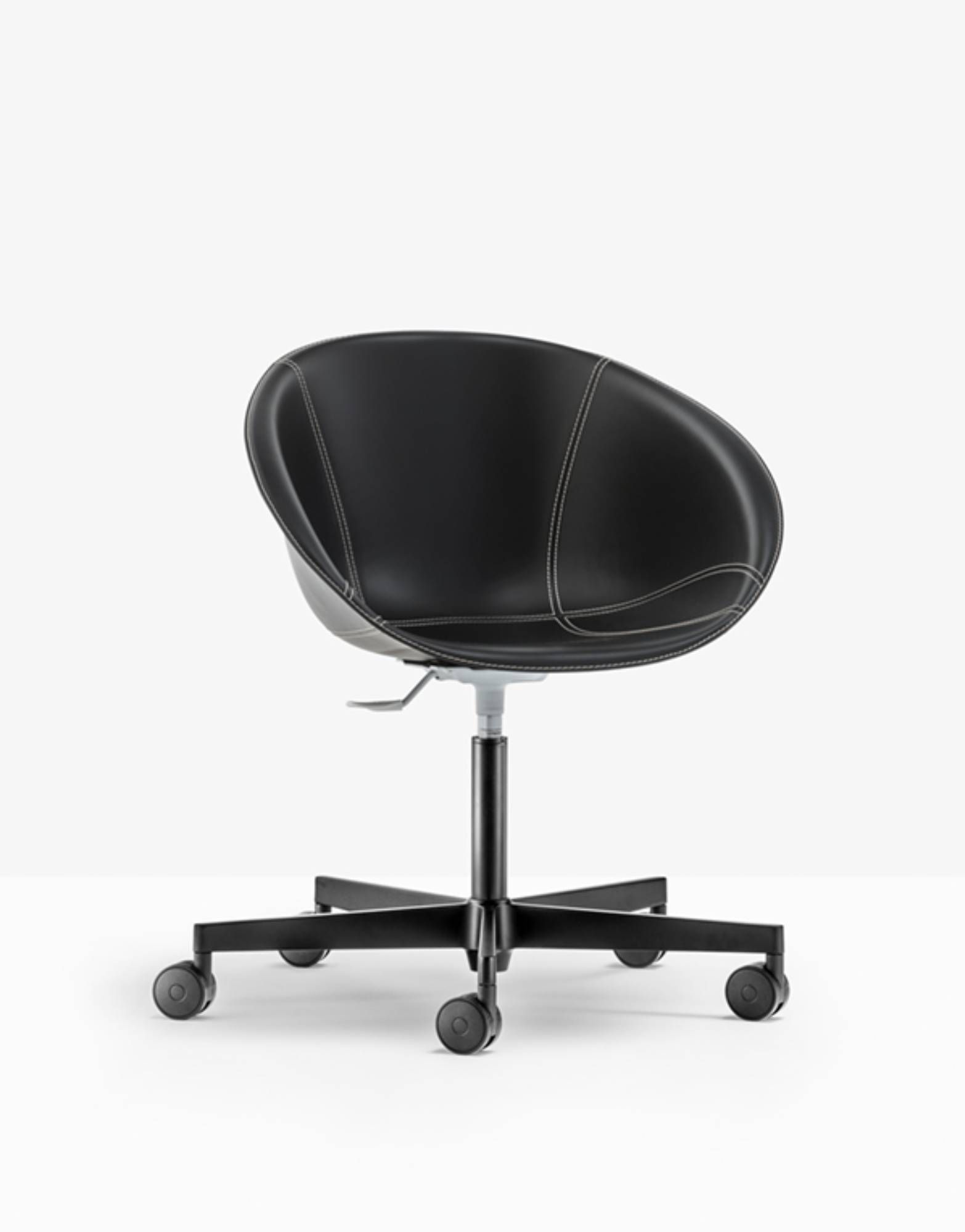 Pedrali Gliss 966/2F Gliss ma przytulny i ergonomiczny kształt inspirowany kultowymi krzesłami z lat pięćdziesiątych, z charakterystycznym otworem w skorupie. Kolekcja wyróżnia się wygodą i funkcjonalnością, jaką zapewniają faliste podłokietniki otulające ciało i łatwość obsługi. Fotel z pokryciem z prawdziwej skóry, pięcioramienna podstawa z odlewanego ciśnieniowo aluminium z kółkami. Z podnośnikiem gazowym. |