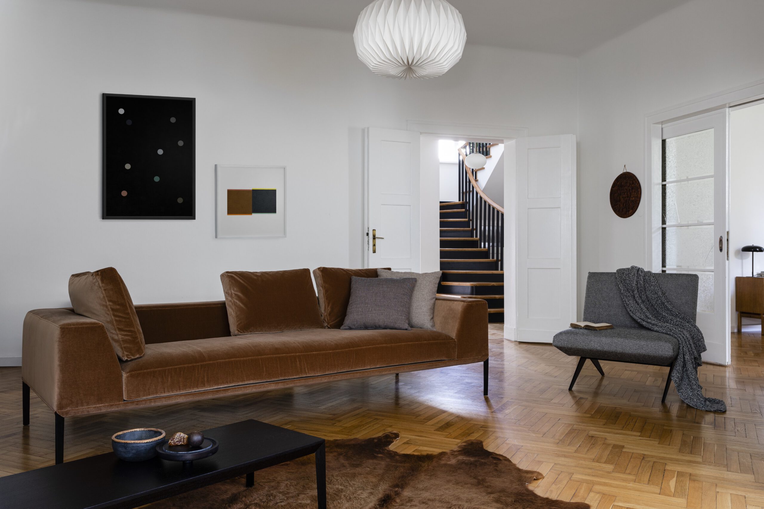 Cechy Podstawa – Nogi stalowe lakierowane lub chromowane; konstrukcja stalowa wykończona okleiną dębową Siedzisko – Pianka poliuretanowa; pasy tapicerskie; kołdra na siedzisku: mieszanka pianki poliuretanowej, pierza i włókna silikonowego; poduszki oparciowe: mieszanka pierza i włókna silikonowego Konstrukcja –Konstrukcja płytowa, elementy metalowe Wykończenie – Tkanina, skóra |