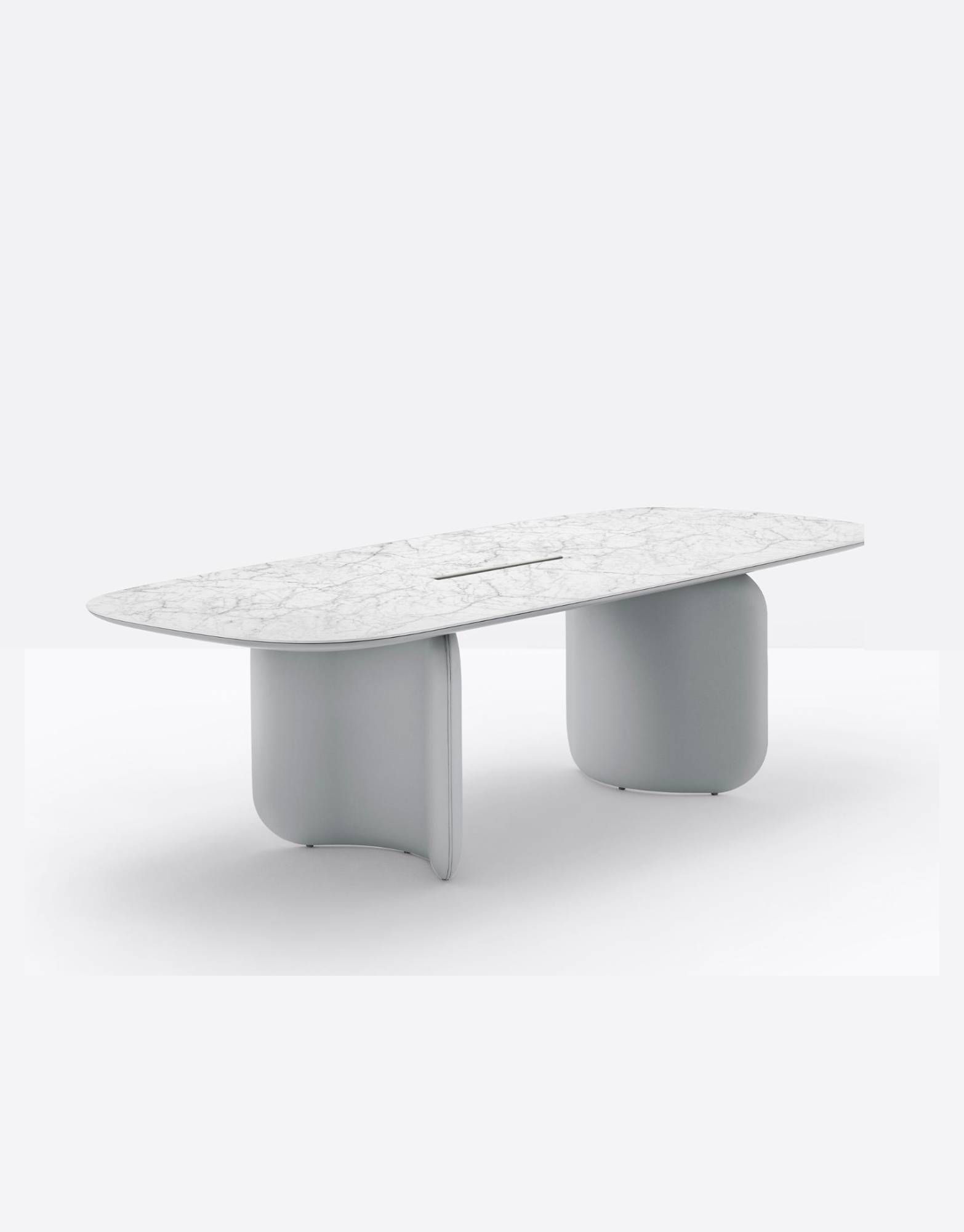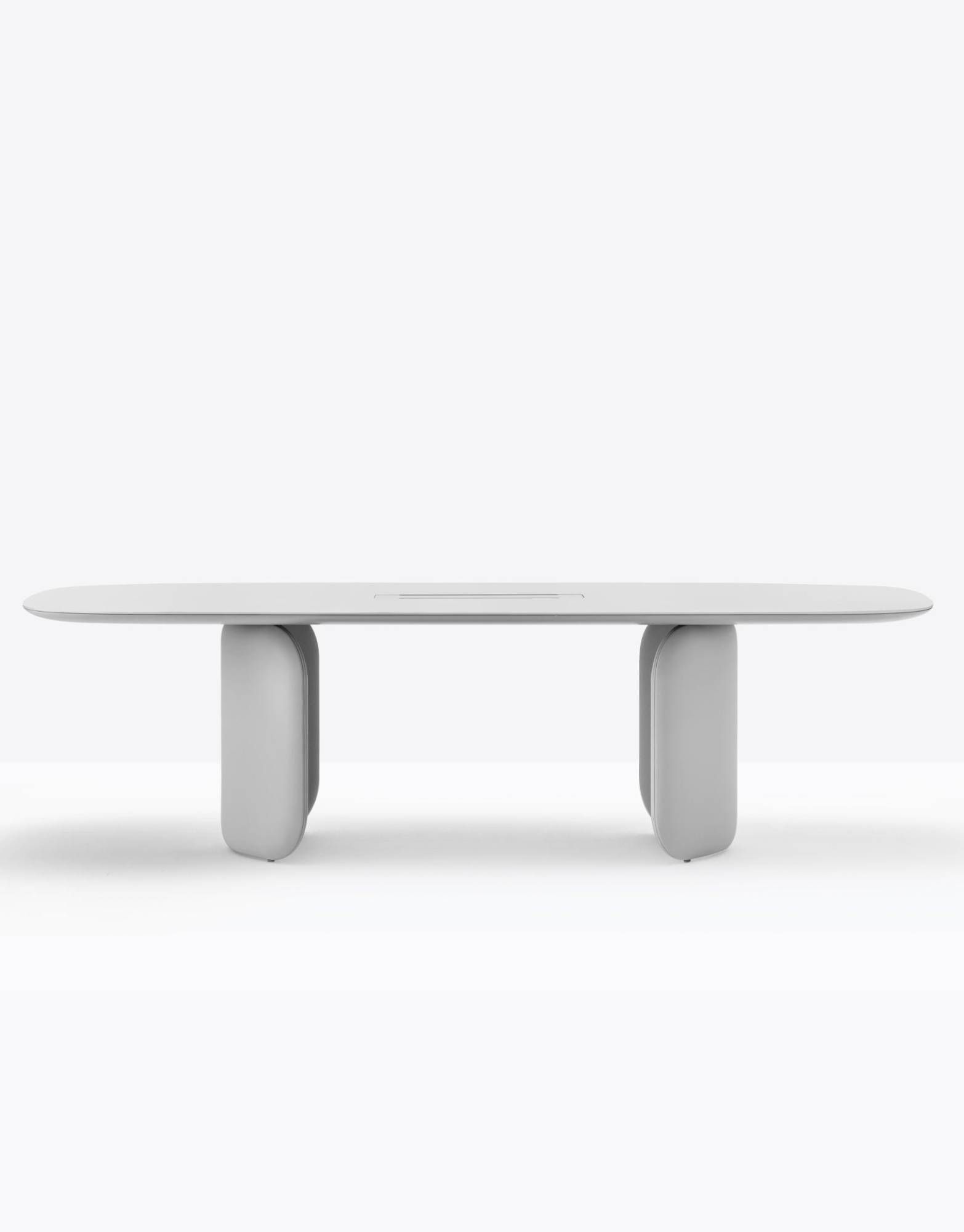 Pedrali ELINOR Table – 200/260/300×110 Kolekcja stołów Elinor, ze swoimi miękkimi i zakrzywionymi liniami, przekazuje wyrafinowany, a jednocześnie współczesny wizerunek. Podstawa składa się z dwóch formowanych elementów o stałych wymiarach, wykonanych ze sztywnej pianki poliuretanowej i tapicerowanych skórą naturalną; wspierają kwadratowy blat z ultracienkiego litego laminatu o grubości 6mm lub białego szkła, z zaokrąglonym lakierowanym wspornikiem MDF pod spodem, który ukrywa stalową konstrukcję. Dwa elementy podstawy są ułożone symetrycznie. Dostępne w dwóch układach, które pozwalają uzyskać różne efekty estetyczne: można je ustawić w sposób przypominający zamknięte lub otwarte zamki. |