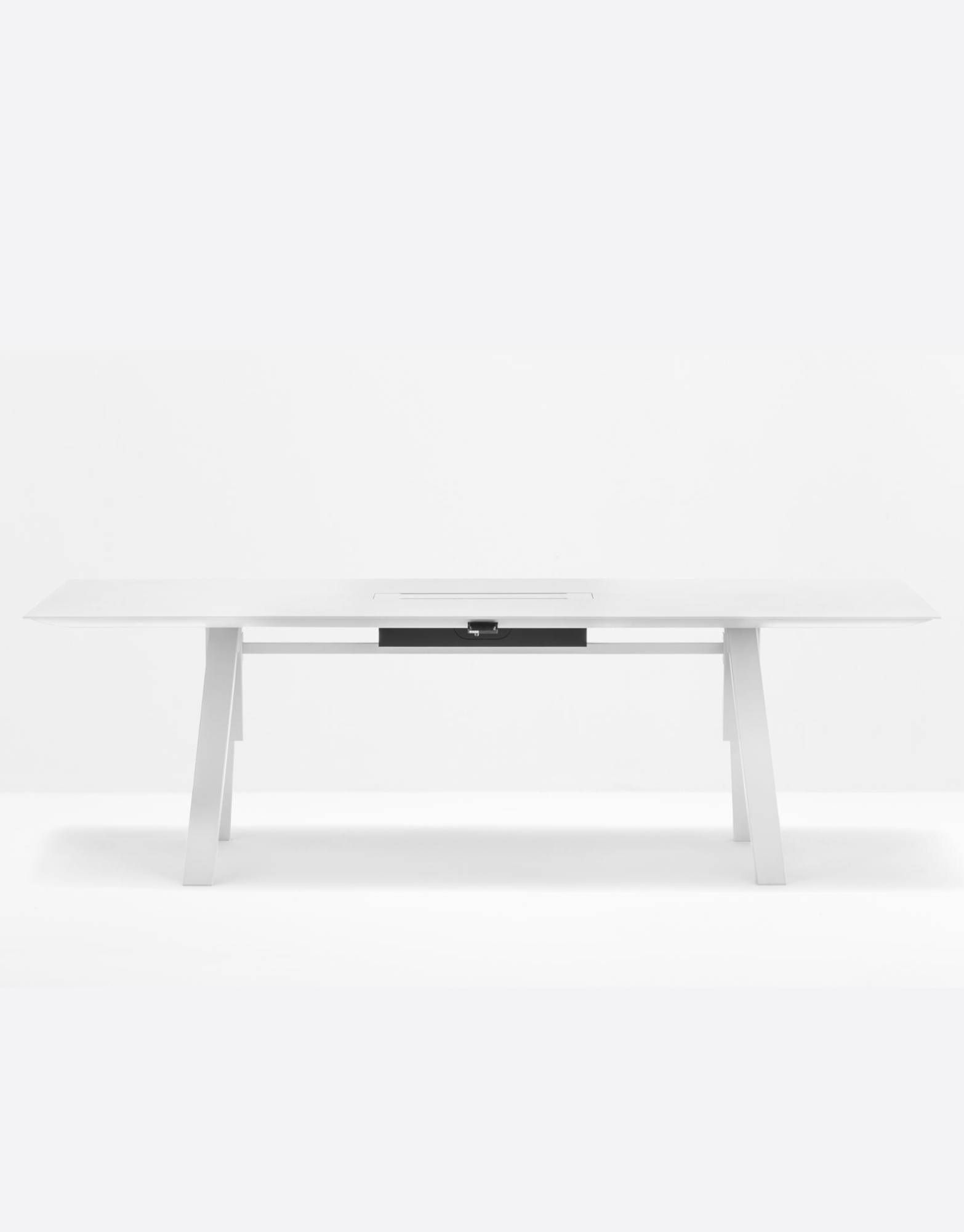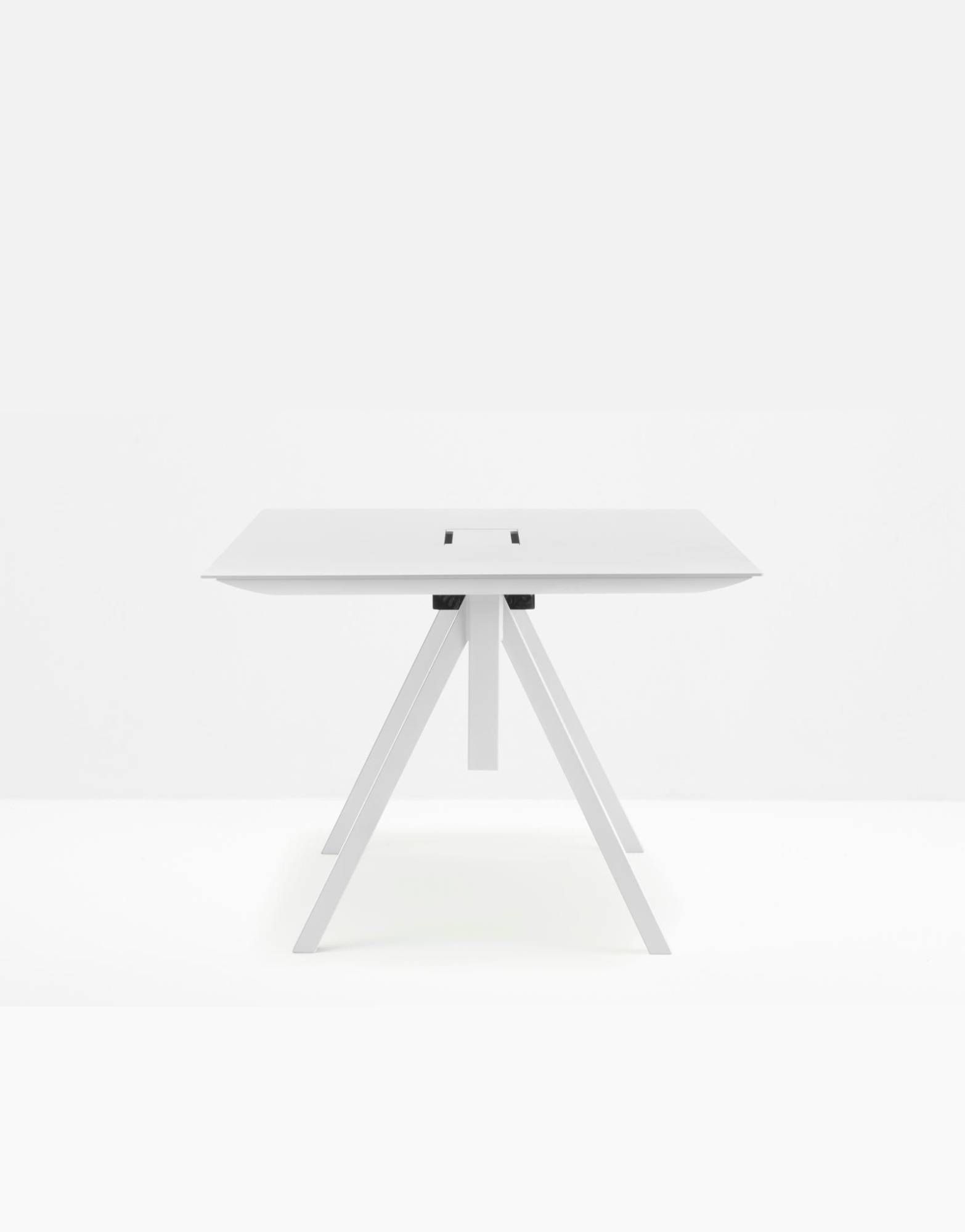 Pedrali ARKI-TABLE Adj Arki-Table optymalizuje swoją zdolność do zaspokojenia potrzeb elastyczności i funkcjonalności nowoczesnych biur, dzięki nowej wersji z blatem o regulowanej wysokości. Stół ze stalowymi nogami kozłowymi i blatem z systemem zarządzania kablami wspartym na wytłaczanej aluminiowej ramie. Dwa siłowniki elektryczne, połączone z jednostką sterującą i uruchamiane jednym sterowaniem ręcznym lub bluetooth umieszczonym pod blatem, poruszają się razem i pozwalają wybrać idealną wysokość blatu od 740 do 1140mm. |