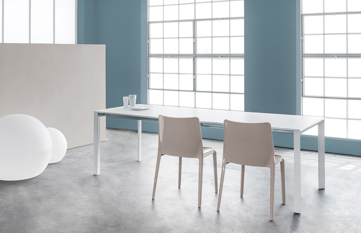 Pedrali MORE TMO Stół More TMO charakteryzuje się podstawowym, czystym i liniowym designem. Rozkładany stół dostępny w trzech rozmiarach ze stalową ramą, aluminiowymi szynami przesuwnymi i blatem z melaminy. |